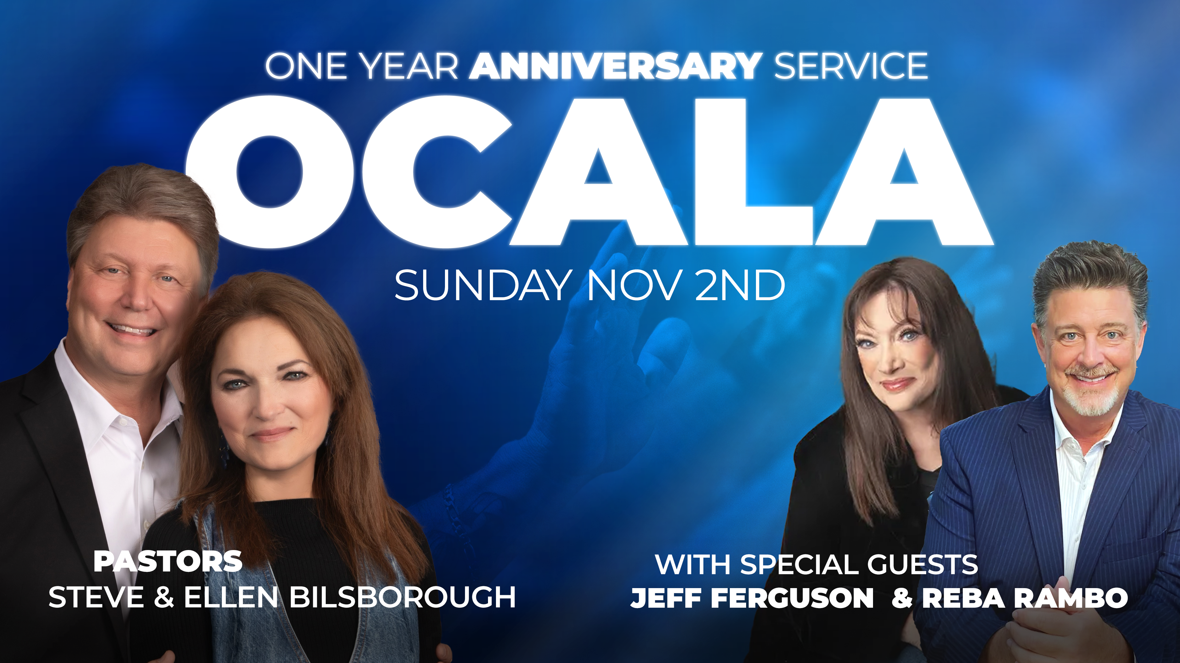 Celebrate ONE incredible year of Great Life Ocala! We invite you to be a part of this special Sunday service with our Senior Pastors, Stephen & Ellen Bilsborough, our ministry team, and special guests Jeff Ferguson and Reba Rambo. To celebrate one year, we will be having food, fun, and powerful testimonies being shared, not to mention an impactful time of praise and worship, giving God thanks for all He has done.